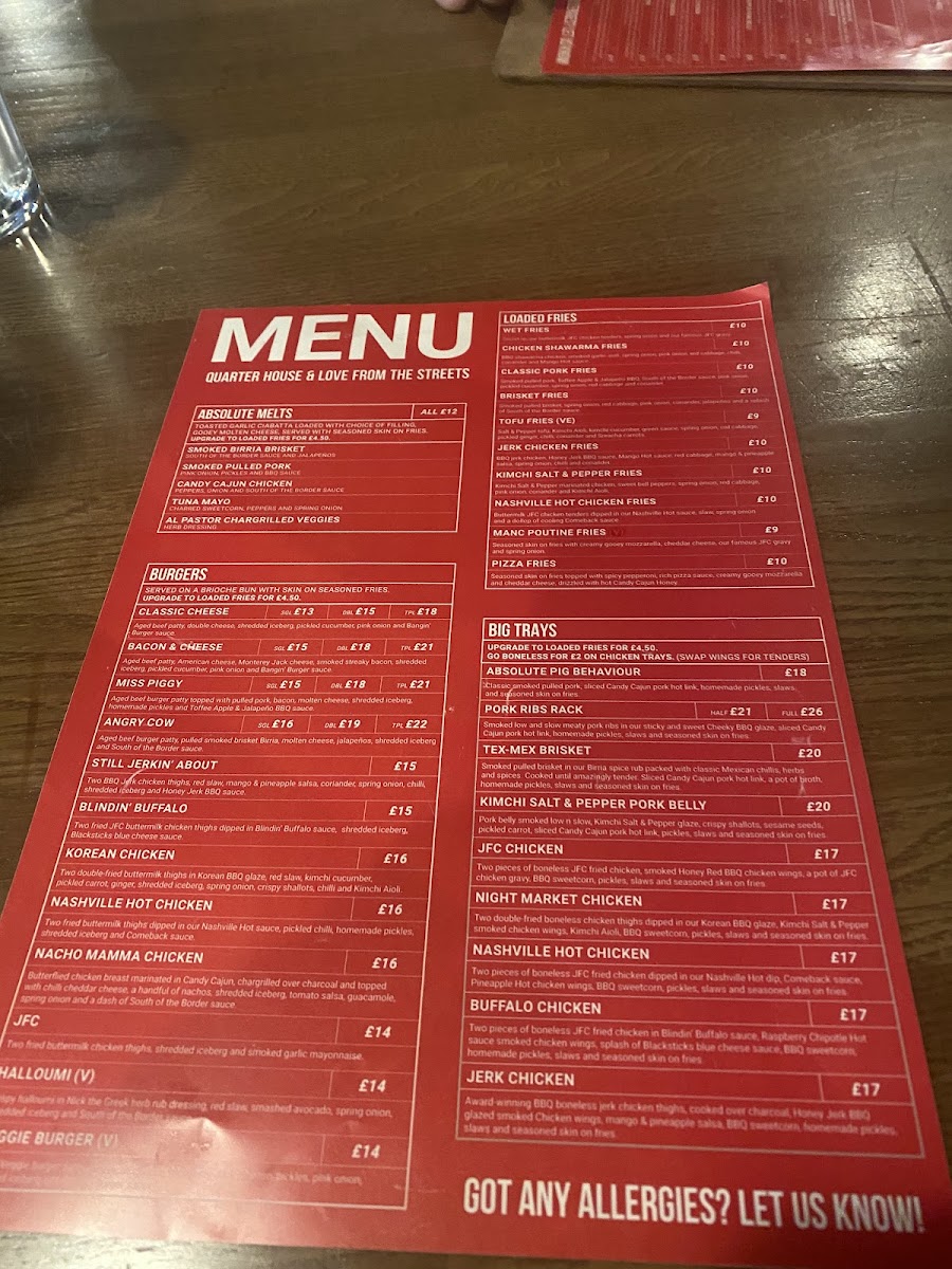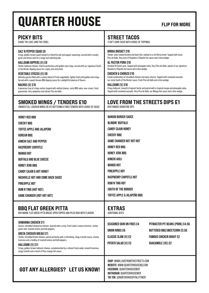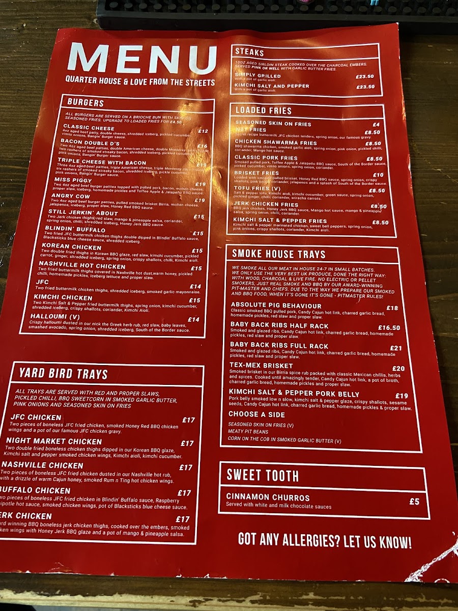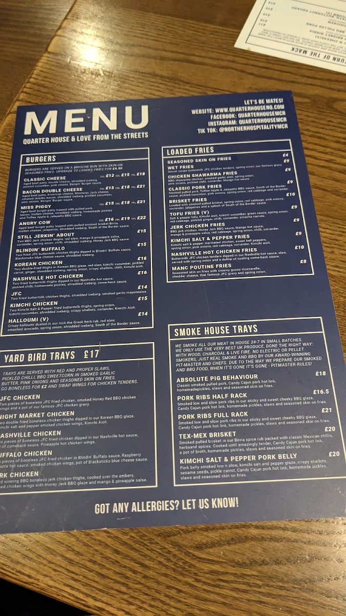 Quarter House Beer & BBQ in Manchester stands out as a great destination for those craving a unique combination of craft beer and delicious BBQ in a relaxed, vibrant setting. Located at 11 Stevenson Square, Manchester, M1 1DB, this spot offers a tantalizing menu designed to cater to both beer aficionados and BBQ lovers alike.